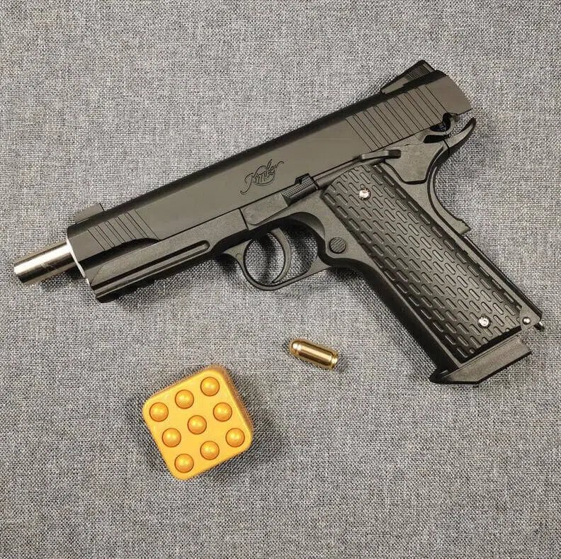 - This colt 1911 laser gun is a laser blowback pistol with shell ejection between each shot.