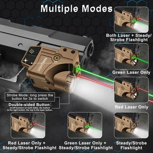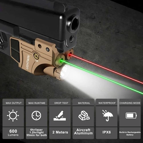Red Green Laser Beams with 600 Lumens Flashlight for Pistols, 3 in1 Laser
